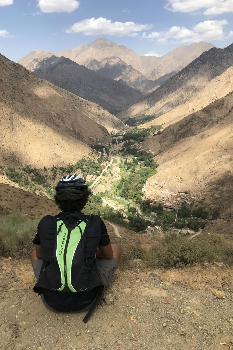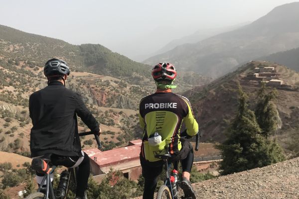Notre aventure commence au village traditionnel de "Moulay Brahim", un village nommé d'après un saint soufi marocain bien connu. Le roard serpente d'avant en arrière sur le flanc de la montagne et monte sur 7 km en direction du magnifique plateau du Kik. Là, du sommet, nous resterons un moment à contempler la vue imprenable et spectaculaire sur les montagnes enneigées (en saison).