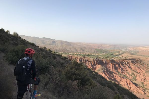 Notre aventure en VTT partira d'une petite ville nichée au pied des montagnes du Haut Atlas, à une heure de route de Marrakech. La ville est entourée par l'une des plus remarquables forêts naturelles que l'on puisse trouver dans les montagnes de l'Atlas. Nous traverserons quelques villages locaux avec des vues fabuleuses sur les pentes rocheuses des montagnes rouges.